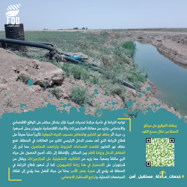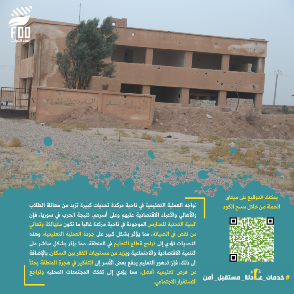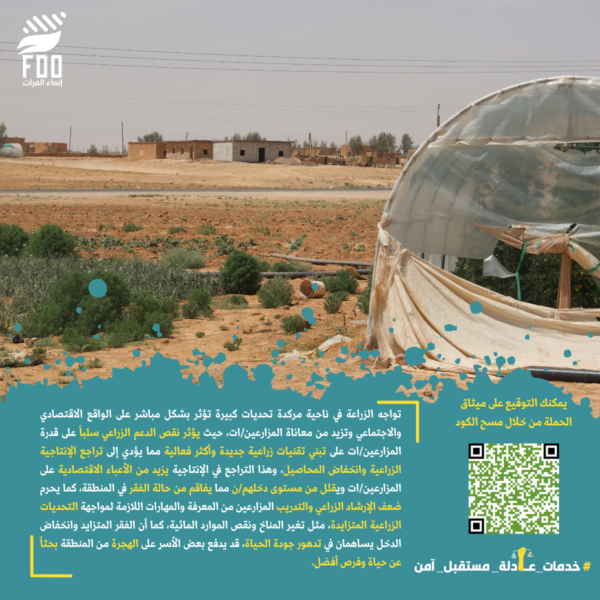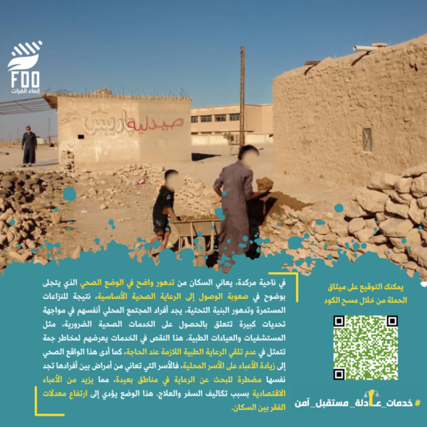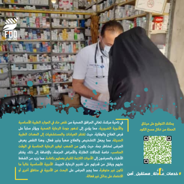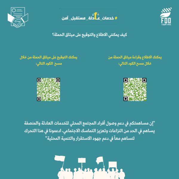 في إطار سعينا لتعزيز وصول أفراد المجتمع المحلي للخدمات العادلة والمنصفة في ناحية مركدة وتعزيز التماسك الاجتماعي والحد من النزاعات والمشاكل المرتبطة بالخدمات، قمنا بإعداد ميثاق دعم حملة #خدمات_عادلة_مستقبل_آمن وهو ميثاق يضم مجموعة من التوصيات التي نعتقد أن من شأنها تعزيز وصول أفراد المجتمع المحلي للخدمات العادلة والمنصفة، يمكنكم/ن كأفراد أو كمنظمات الاطلاع على توصيات ميثاق دعم الحملة والتوقيع عبر الروابط الالكتروني المخصص أو عبر النموذج الورقي الذي يمكن الحصول عليه من خلال زيادة مكتب منظمة إنماء الفرات في ناحية مركدة- الجناة، إن توقيعكم/ن على هذا الميثاق يساعدنا في تعزيز جهود التضامن والمناصرة المحلية التي من شأنها دفع جهود وصول أفراد المجتمع المحلي للخدمات العادلة والمنصفة، كونوا جزء من حلمنا…..