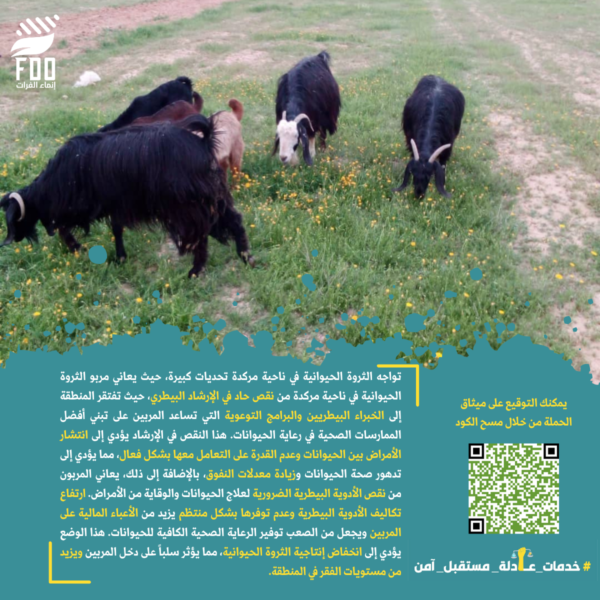 I. دعم توفير الأدوية البيطرية بأسعار مدعومة للمربين لضمان حصولهم على العلاج لحيواناتهم، وتنظيم حملات تطعيم دورية للحيوانات لمكافحة الأمراض والوقاية منها.
